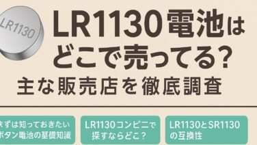 日用品 LR1130電池はどこで売ってる?互換性や代用品も解説 「lr1130 電池はどこで売ってる?」そんな疑問に答えます。ダイソーやセリアといった100円ショップ、コンビニ、家電量販店などでの販売状況を徹底調査。lr1130 電池 どこで売ってるかの疑問を解決するだけでなく、互換性のあるSR1130やLR44との違い、安く買う方法まで網羅的に解説。 2025.09.10 日用品